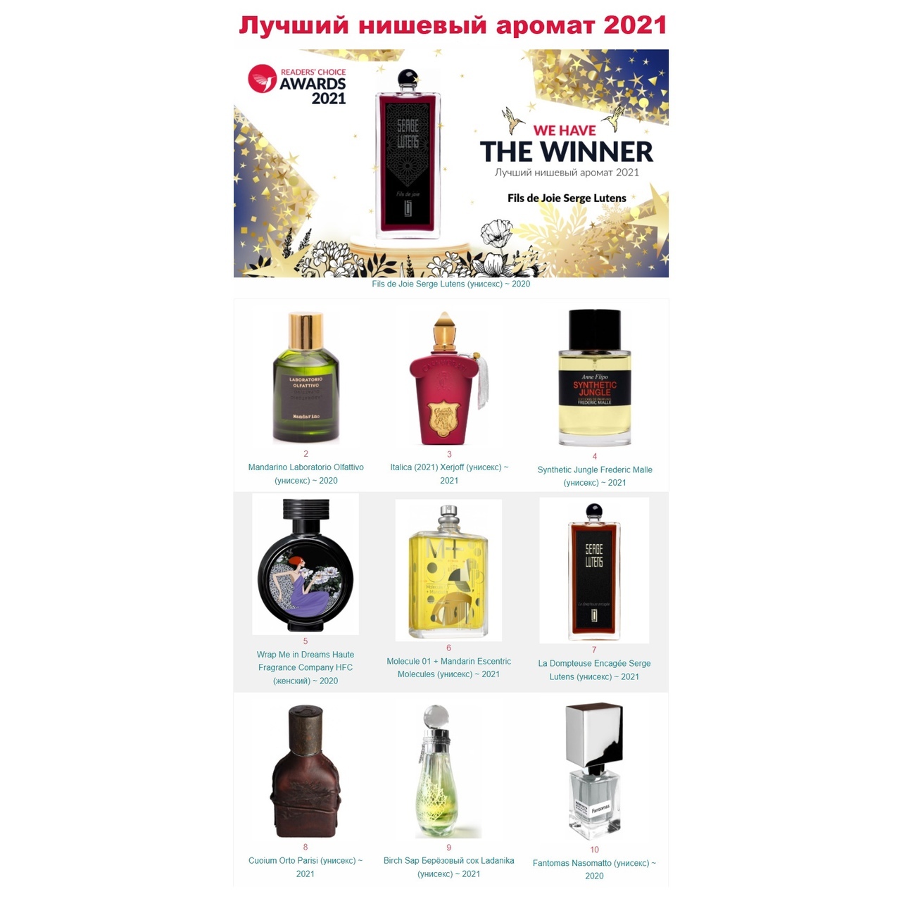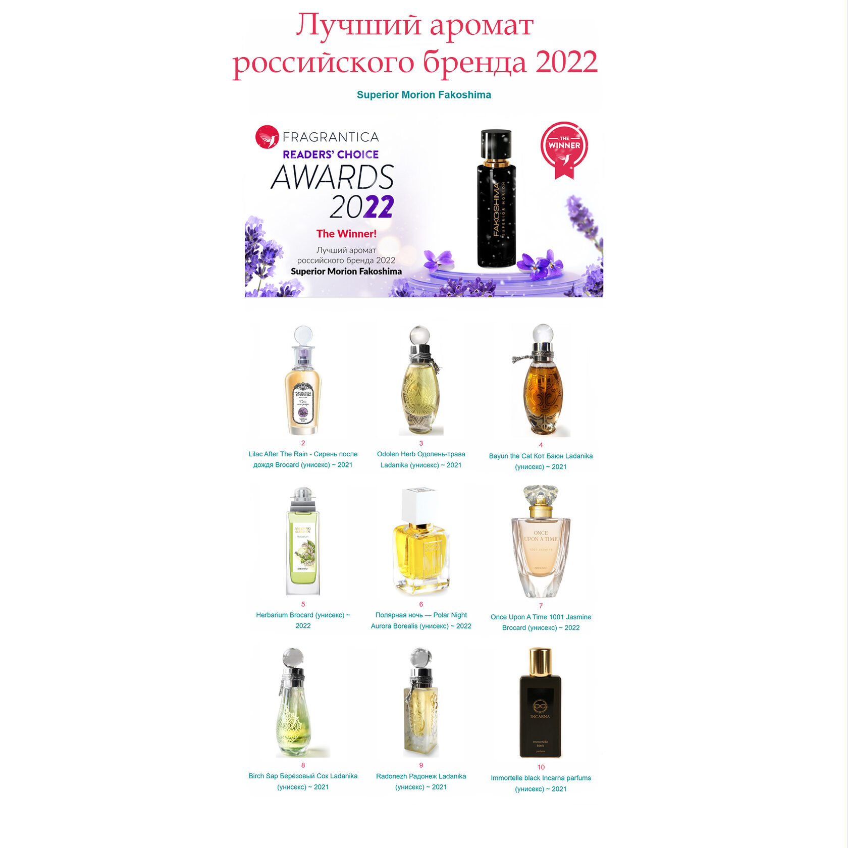 Fragrantica в номинациях Лучший нишевый аромат 2021 и Лучший аромат российского бренда 2022.
