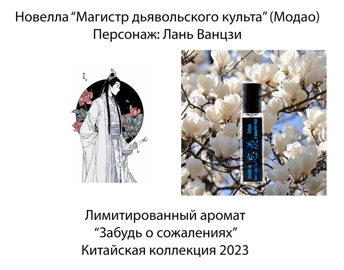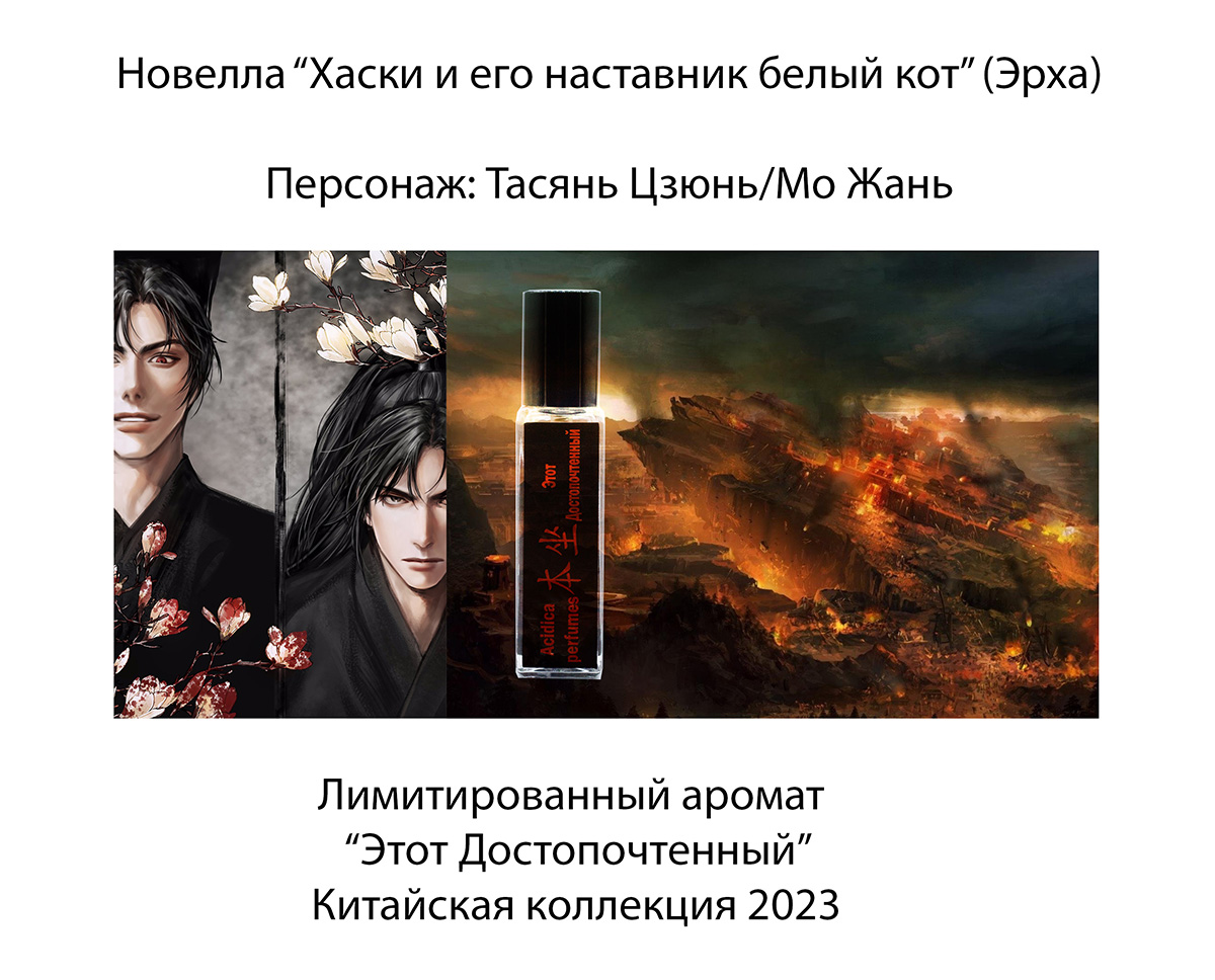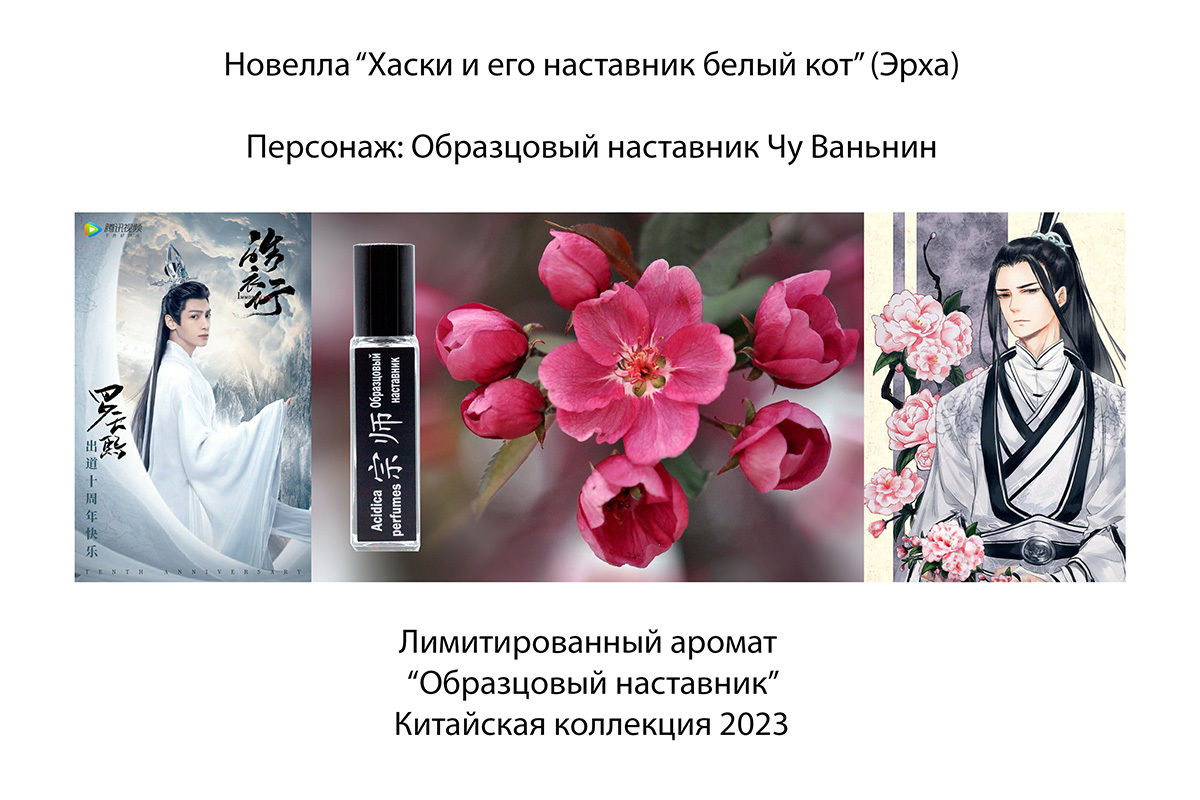 Аромат посвящен Чу Ваньнину, главному герою китайской новеллы Жоубао Бучижоу «ЭрХа» (Хаски и его учитель Белый кот 二哈和他的白猫师尊). Выпущен в 2023 году. Концентрация духи.